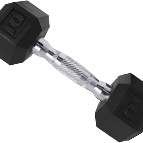 - INCLUDES - Pair of 25 lb coated hex-shaped dumbbells with steel, knurled handle with chrome finish for non-slip grip.
