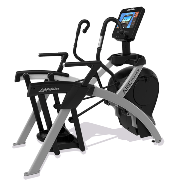 The Arc Trainer is a versatile alternative motion cross-trainer that appeals to a wide range of exercisers. Moving arms with multi grip handles provide a total-body workout that exerts less stress on the knees than walking. The 21 incline levels allow users to choose the type of workout they prefer and the different muscle groups that they want to work. The Arc Trainer is truly a 3-in-1 cardio machine. The wide incline range gives exercisers the ability to glide (lower inclines), stride (medium inclines), or climb (higher inclines). Users can also choose between long cardio workouts, short bursts during interval training, or workouts focused on building power and strength. Fitness facilities have several console options to choose from. They range from simple and intuitive, to entertainment rich and engaging.