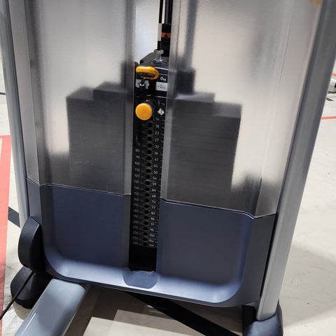 Weight Stack(s) | Units have fully shrouded weight stacks in full compliance with ASTM and EN standards. Each selector plate is entirely precision-machined on all surfaces. Top plate has replaceable precision self-lubricating bushings. The plates feature a black painted protective finish. Guide rods are precision centerless ground, polished, with corrosion-resistant plating for smooth operation and rust retardation. The weight stack is elevated to facilitate user pin selection from seated position. |