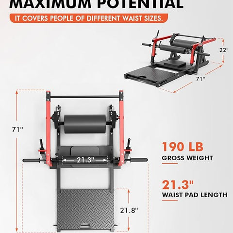 - Quality Shines Through in Every Aspect: Hip thrust machine made of 14 gauge, with smooth welding weight capacity up to 800LBS. Assembled Dimension: 31"(L) x 71"(W) x 22"(H) Gross Weight: 192LBS. Commercial-grade dual pivot bearings ensure a seamless operation, two rear support frames provide the maximum weights for all of the trainers.