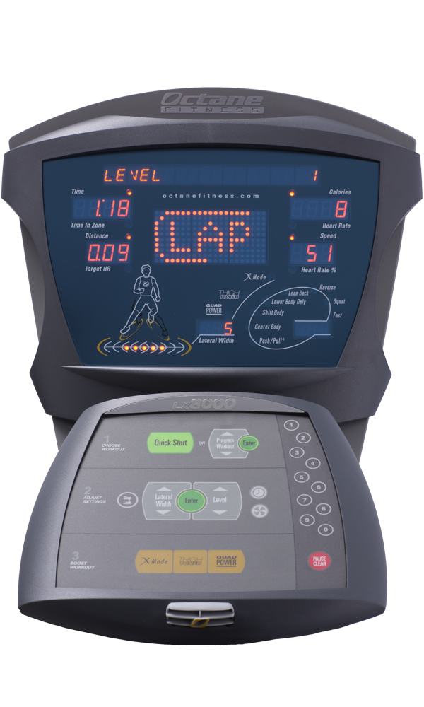 Adding interval training to Lateral X routines is as easy as pushing a button to take on Octane’s trademark Workout Boosters, like X-Mode, Quad Power and Thigh Toner, which deliver greater challenges using quick bursts of cross training movements that target the entire body.