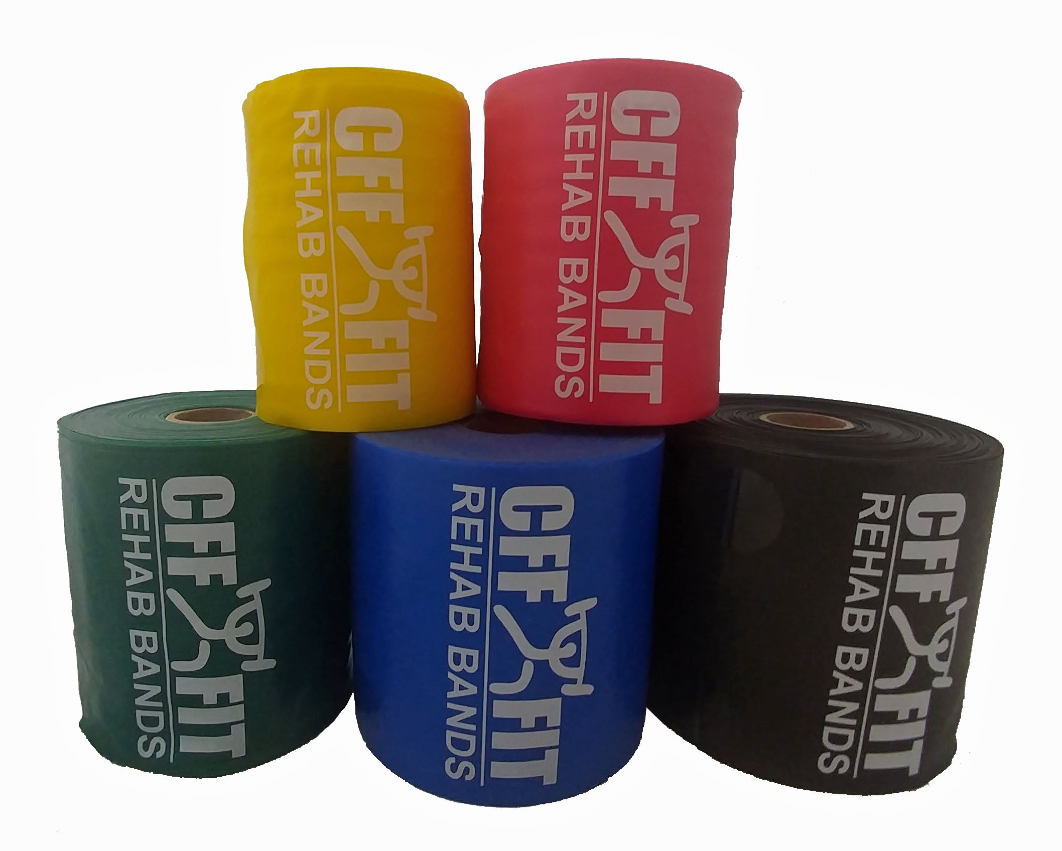 CFF FIT REHAB BANDS - NON-LATEX RESISTANCE BANDS - 25 YARD ROLL (75 FT) are the #1 choice for Physical Therapy, Mobility, Speed, Strength, Pilates, Kinetic, Physio, & Resistance Training