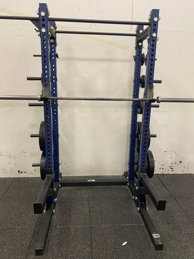 - Included: Safety arms, J-hooks, plate storage, bar storage