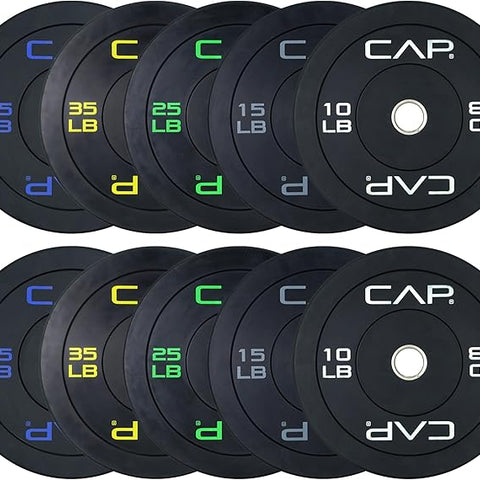 - WHAT’S INCLUDED – 10lb pair, 15lb pair, 25lb pair, 35lb pair and a 45lb pair of Economy bumper weight plate in black; Designed to accommodate Olympic barbells (with 2-inch center hole)